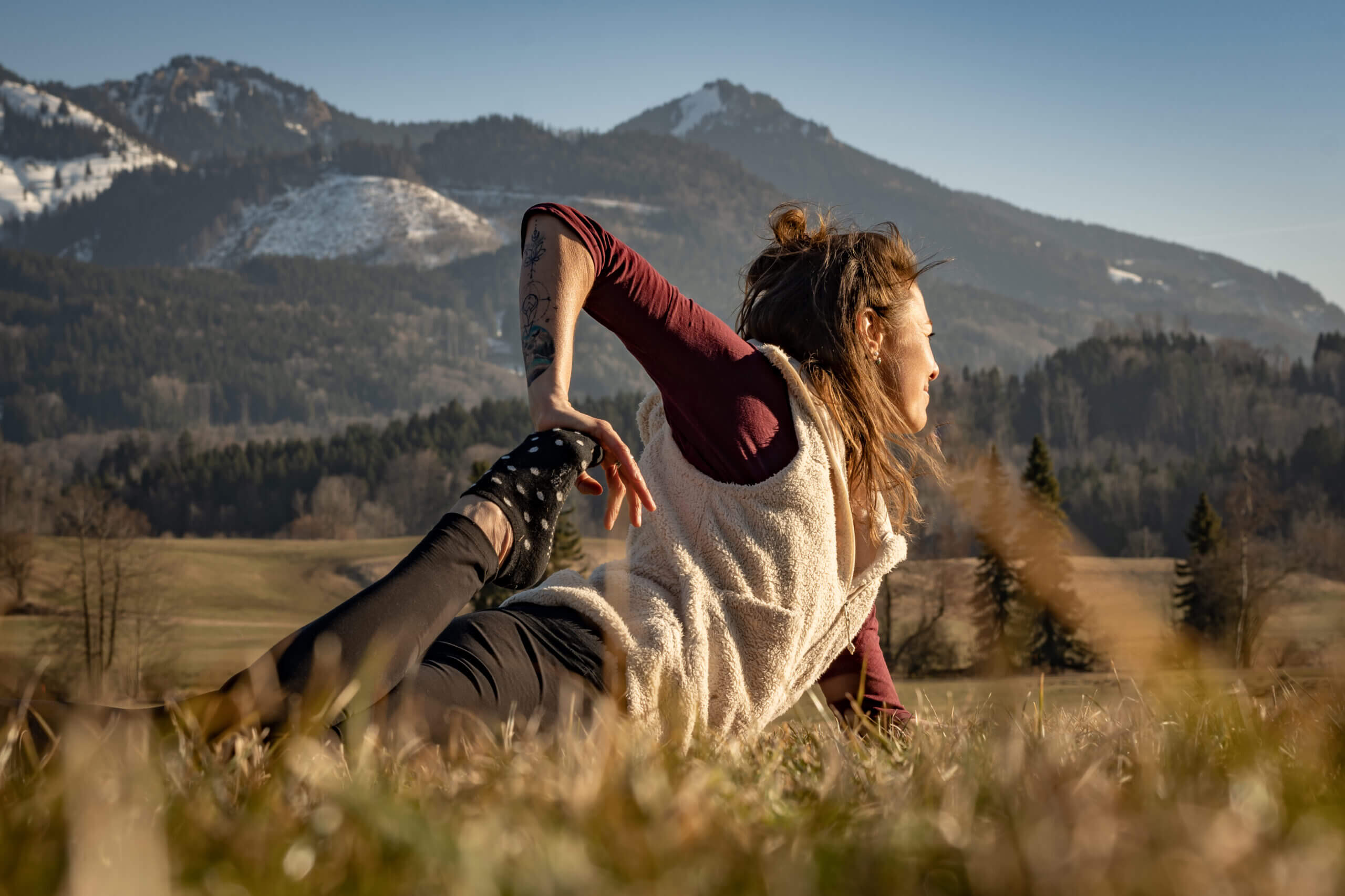 Mit Steffi durfte ich hoch hinauf auch die Hochries. Dort angekommen erfuhr ich, was „Naturyoga“ für die gelenkige Lehrerin bedeutet: Verbundenheit zur Heimat und im Einklang mit Atmung und Natur sein. Mehr zu Steffi und ihrem Angebot findet ihr hier: Start | Natur Yoga Chiemgau (naturyoga-chiemgau.de)